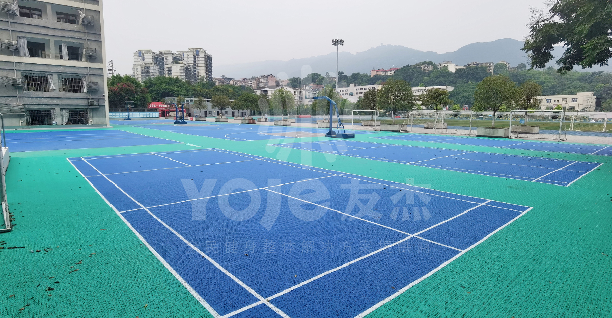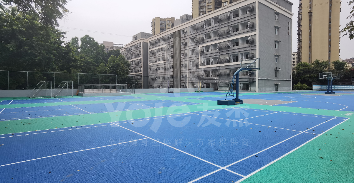 西南大學附屬中學校創建于1914年(民國三年),原名“四川省立第二女子師范學校”;2011年,更名為“西南大學附屬中學?!?。由于經過多年的使用,這所名校的球場地面已經非常陳舊,不僅影響美觀,在上面打球也有受傷的風險,新球場的建設迫在眉睫。友杰體育是一家集設計、供應、施工、售后為一體的場館、場地、體育設施建設之企業。針對校園體育場地場館建設也非常有經驗,經過前期細致的調研并提出相關施工方案,得到學校領導的認可。最終友杰最專業的施工團隊經過不懈的努力,為大家呈現驚艷的最終效果。