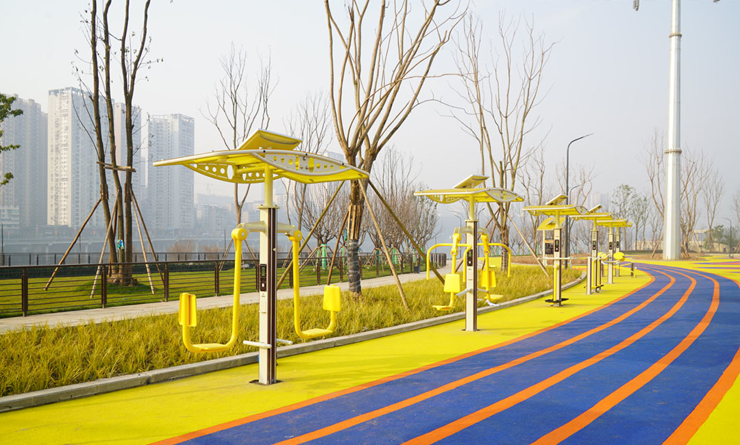金福島體育公園是潼南區重點打造的城市生態濕地公園,公園內配置了羽毛球場、網球場、乒乓球場、沿江健身步道、自行車道、智能健身路徑等相應設施。市民不僅能在環境優美的沿江公園散步,還能鍛煉身體,一舉兩得!