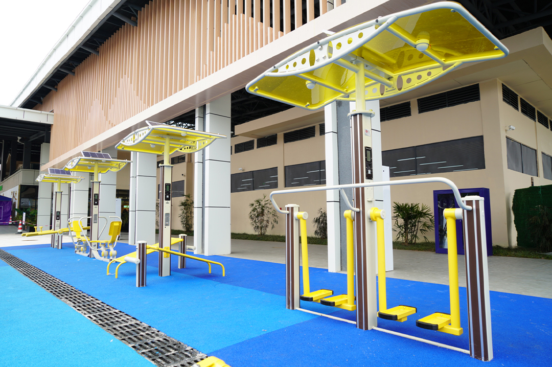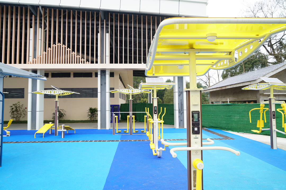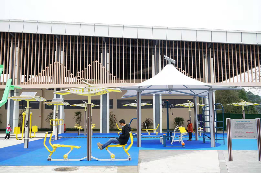 路徑采用舒華最新的智能路徑系列,旅客可根據自己需求調節器材阻力,提升鍛煉效果。遮陽棚采用進口材質PC耐力板,遮陽棚上安裝太陽能板。每一臺都配有LCD顯示屏,并且能語音播報運動數據。