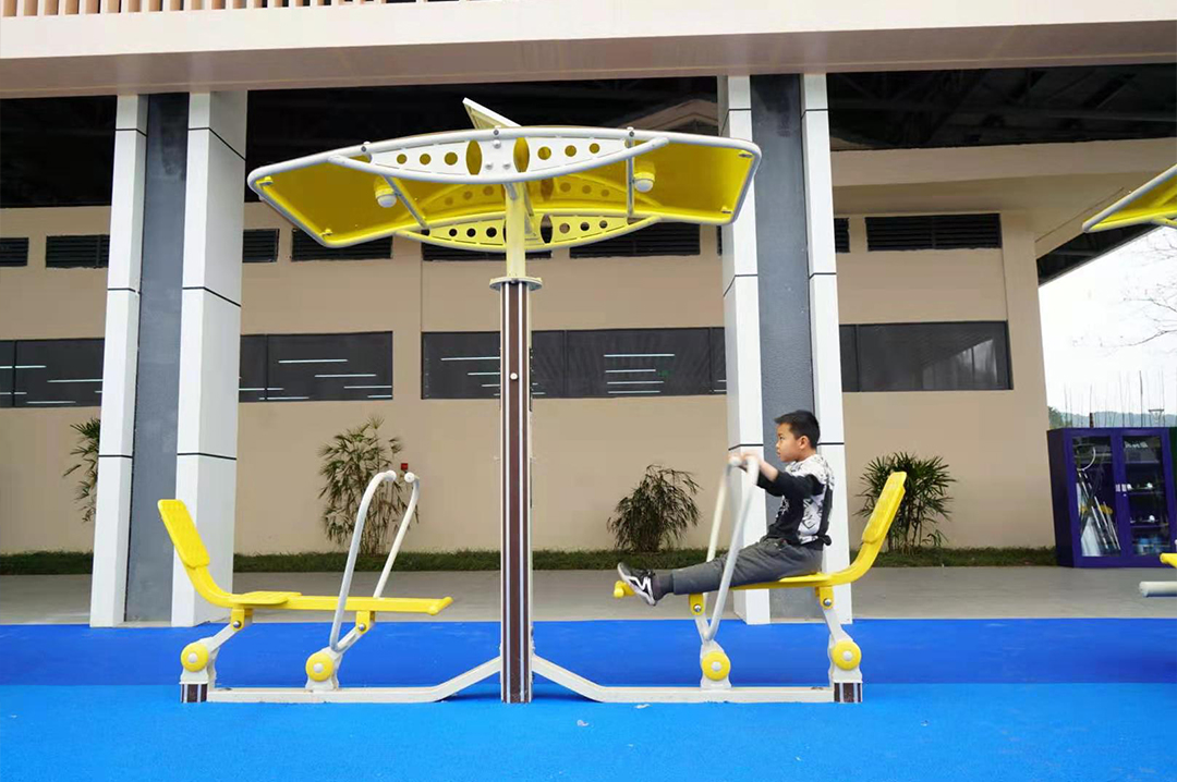 器材以深棕色塑木邊條做裝飾,采用灰色與黃色色調相搭配。讓器材既能與自然環境相融合,又不失運動的活力氣息。