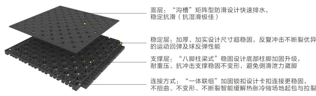 友杰為這所歷史悠久的名校帶來了全新的高科技產(chǎn)品——室外運(yùn)動場SES彈性地板。讓我們先來了解一下這一款新型橡膠材料彈性地板,整體結(jié)構(gòu)充分體現(xiàn)了橡膠材料的超級彈性,超環(huán)保、超舒適、超緩震、超防滑、超耐候、超安全,“質(zhì)造”極致性能,提供絕佳運(yùn)動體驗與安全防護(hù)。