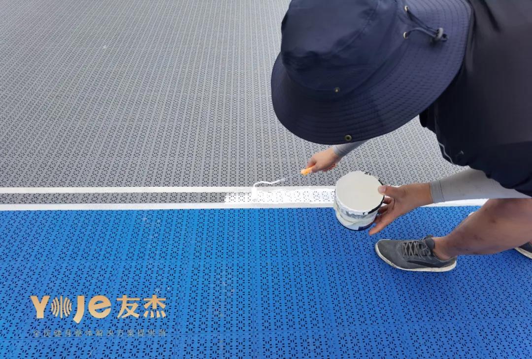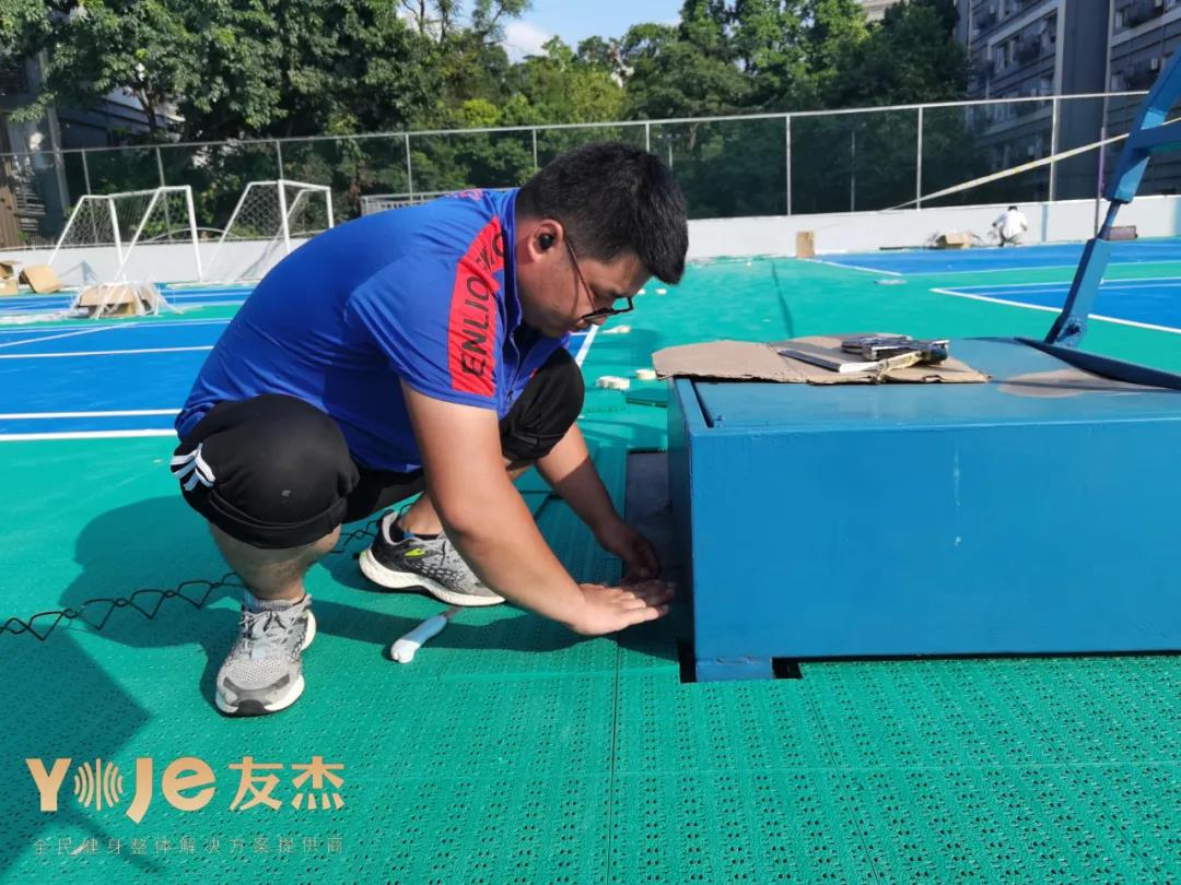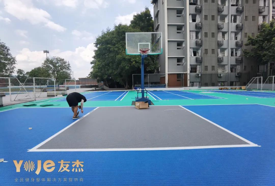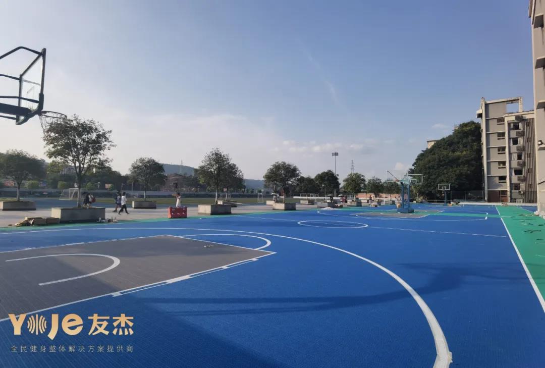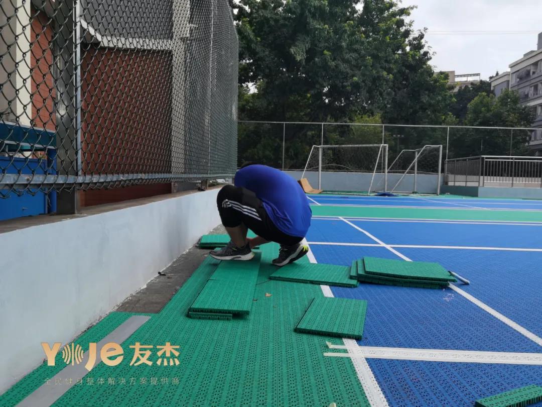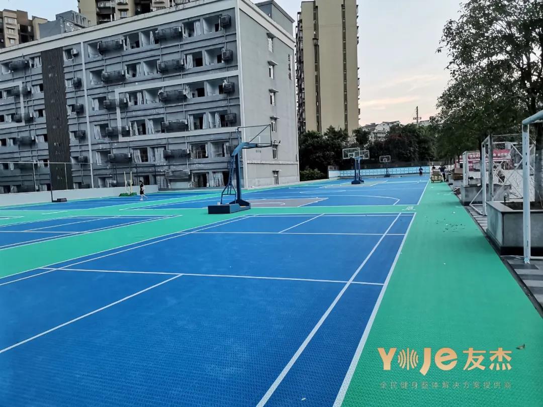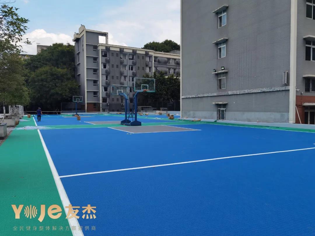 經(jīng)過友杰最專業(yè)的施工團(tuán)隊不懈的努力,大家來看看最終呈現(xiàn)的驚艷效果。綠色和藍(lán)色的搭配,讓整個球場顯得干凈而不失活力,不僅為校園平添一抹風(fēng)景,也讓同學(xué)們在上面可以更放心,安全的運(yùn)動。