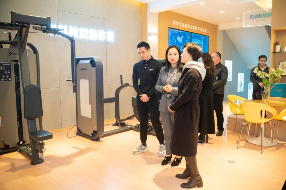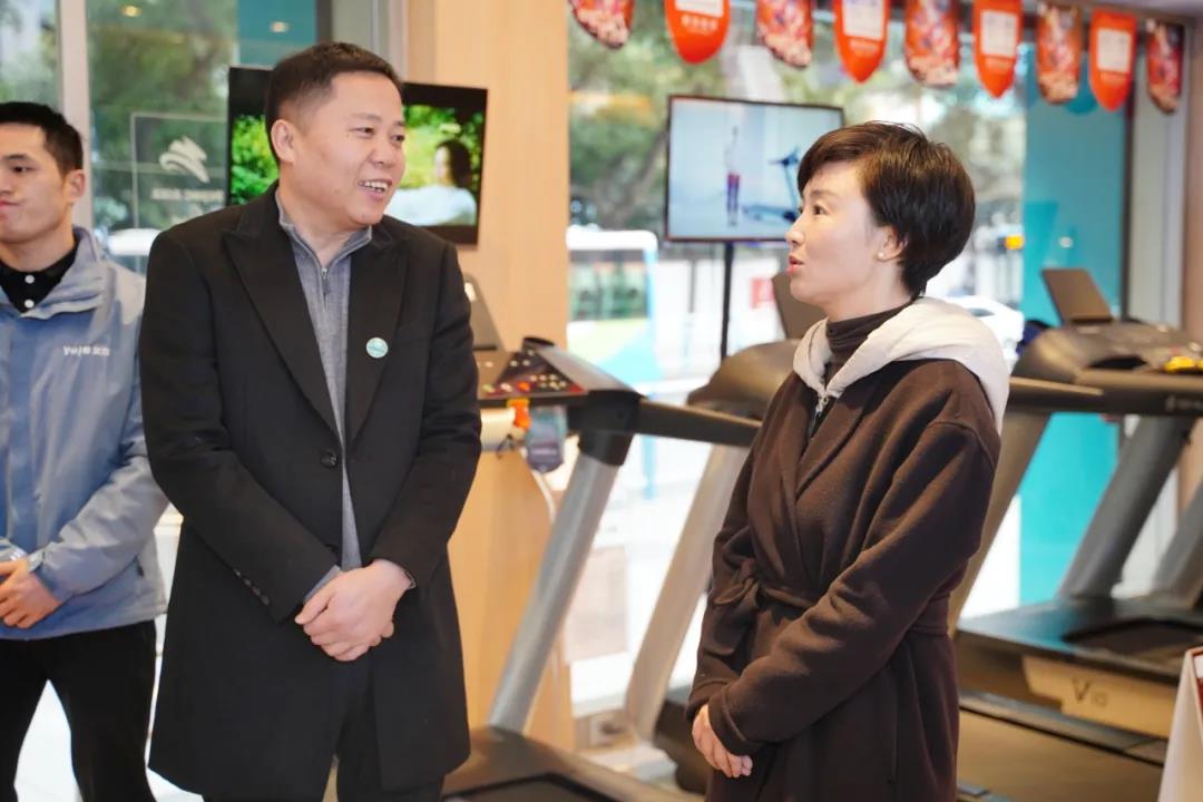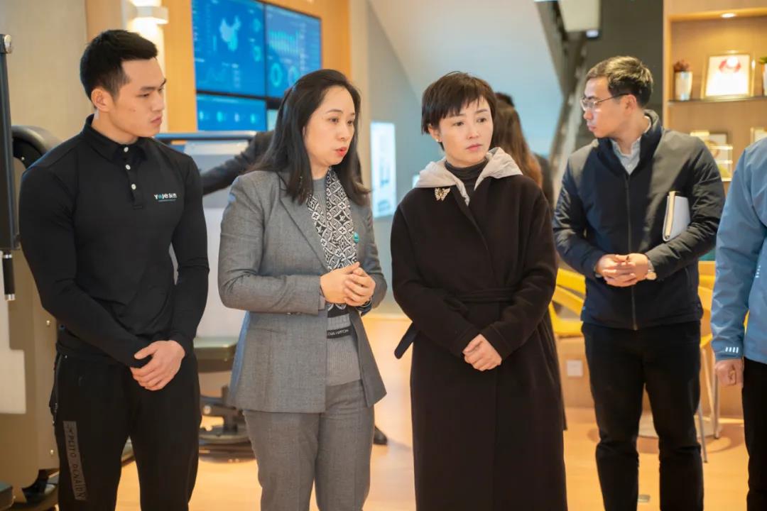 參觀過程中,高琳區長對友杰體育在家庭健身、商用健身、全民健身、體能訓練、老年健身、校園體育等解決方案的產品和培訓服務進行了詳細了解,對公司智能化的產品以及一站式的全民健身解決方案表示高度贊賞。