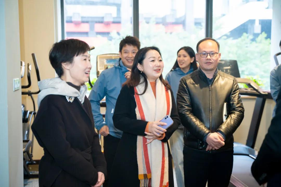 高琳區長一行先后參觀了友杰體育家庭健身、商用健身、全民健身、體能訓練、老年健身、校園體育等多個展廳,深入了解了全民智慧健身和企業發展情況。隨后,雙方圍繞重慶體育產業行業前景、發展合作等方面進行了交流和探討。