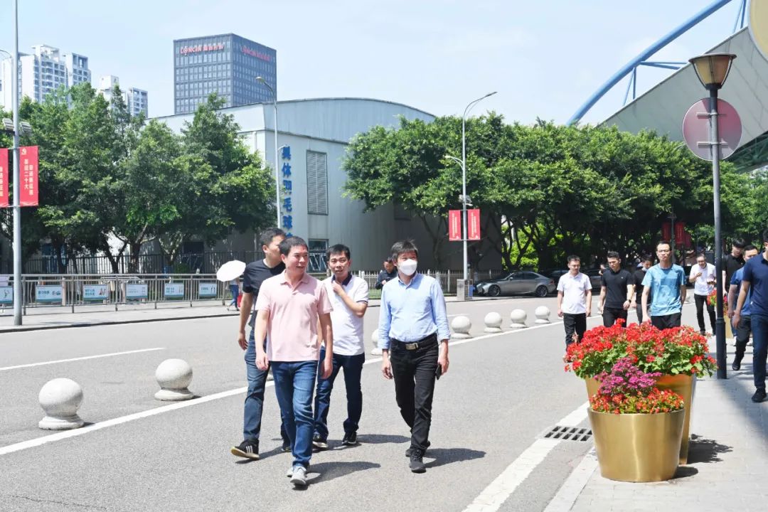 2022年 5月23日,舒華體育董事長兼總裁張維建,副總裁李曉峰及營銷事業中心總經理連新安等一行蒞臨重慶奧體中心舒華旗艦店視察指導。重慶友杰體育總經理吳成恩攜公司高管人員熱情接待張總一行。