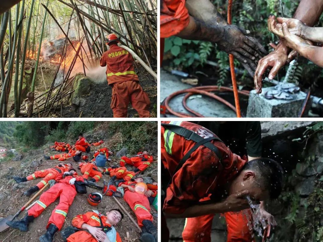 高溫炙烤,他們熱浪中沖鋒,高強度的滅火戰斗中,救援人員承受著高溫天氣和烈火的雙重炙烤。他們磨壞了戰靴,四肢隔著衣物仍被熏黑。