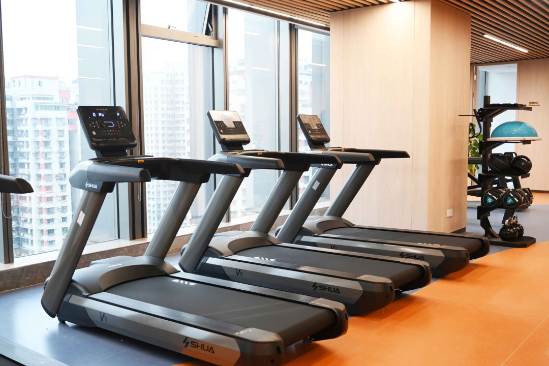 其中舒華商用V系列有氧設備,憑借出色的減震和流暢的運動軌跡得到了用戶的青睞,也有效避免了運動損傷。