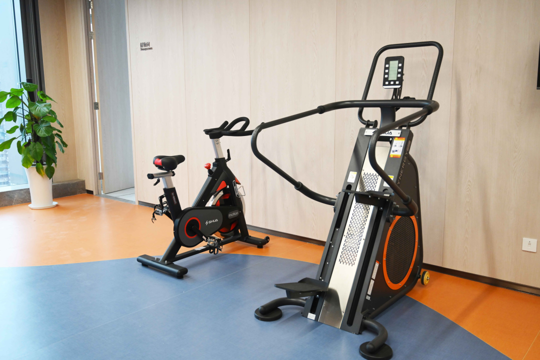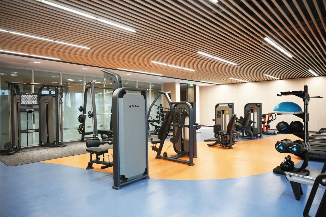 員工健身房除了規劃了傳統的有氧鍛煉區、力量鍛煉區,還特別規劃了乒乓球區、普拉提、瑜伽、及體適能運動表現提升區。除了舒緩壓力,還改善久坐人群的的體態,增強身體的柔韌,提供一個放松身心的好地方,也讓員工擁有更平衡的心態去面對工作的挑戰。