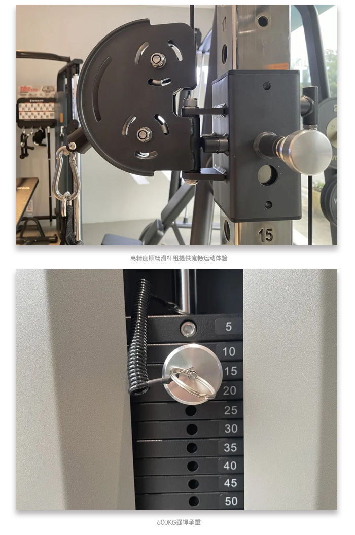 舒華多功能史密斯6825以其流線型的外觀設(shè)計(jì)和堅(jiān)固的結(jié)構(gòu)設(shè)計(jì)贏得了用戶的青睞。整體采用優(yōu)質(zhì)鋼材打造,確保了器材的穩(wěn)定性和耐用性,承重能力高達(dá)600KG。此外,其配備的高精度順暢滑桿,為健身者提供流暢無阻的運(yùn)動(dòng)體驗(yàn)。同時(shí),各種科學(xué)的握持設(shè)計(jì),讓健身者在訓(xùn)練過程中能夠享受到更加舒適、安全的鍛煉環(huán)境。