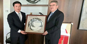 北京時間10月18日,在意大利助威晉江成功申辦2020年世界中學生運動會后,舒華股份有限公司董事長兼總裁張維建,與安踏董事局主席兼CEO丁世忠等一行人士,一同來到瑞士拜訪國際奧委會主席巴赫,得到了巴……